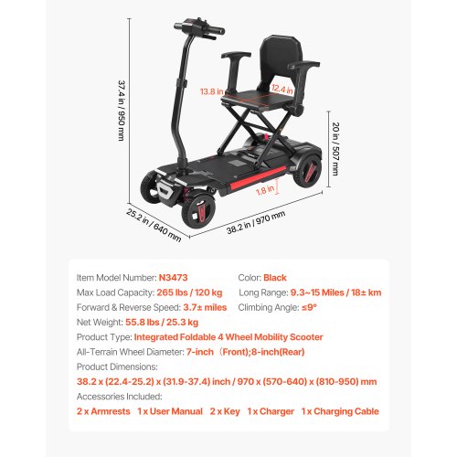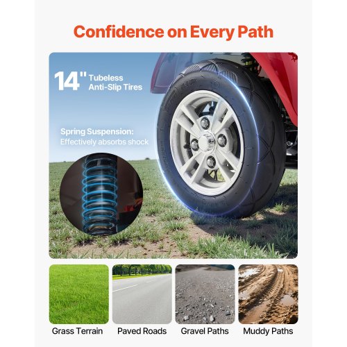 VEVOR Heavy-Duty 4 Wheel Mobility Scooter for Seniors 12 Mile Long Range 265LBS