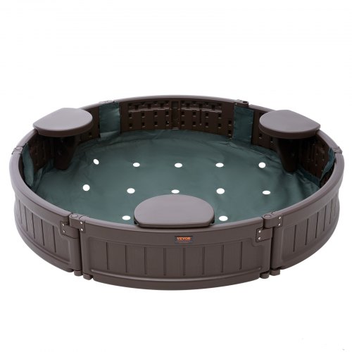 VEVOR Sandbox with Cover, 47.2 x 9.1 in Round Sand Box, HDPE Sand Pit with 3 Corner Seating and Bottom Liner, Kids Sandbox for Outdoor Backyard, Beach, Park, Gift for Boys Girls Ages 3-12, Brown