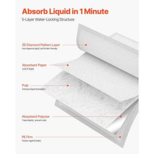 VEVOR Disposable Underpads, 21" x 36" Incontinence Bed Pads, Super Absorbent Chux Pads with 5-Layer Protection for Bed Sofa and Mattress, Protective Bedwetting Pad for Pet Adult Kid Elderly (48-Pack)