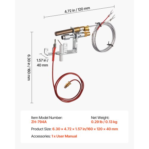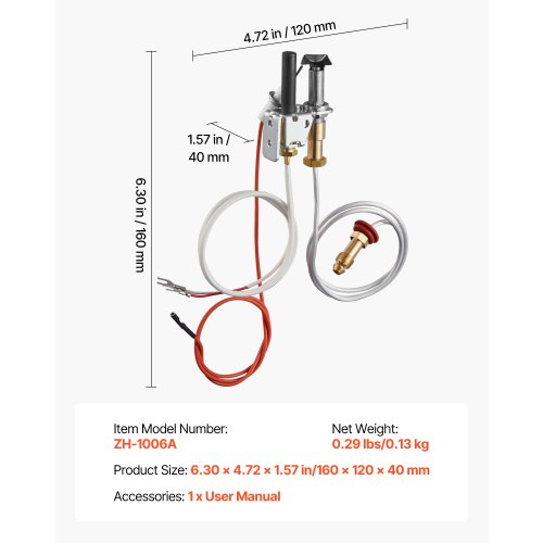 VEVOR Gas Pilot Assembly, OE 103779-01, PP231, NG8218 Fireplace Natural Gas Ignition Replacement, Compatible with CIVF-25, CIVF-25CF, VFH-33M, VFH-33R, VFH-33T, VFHS-20R, VFSR-16, VFSR-18 Models