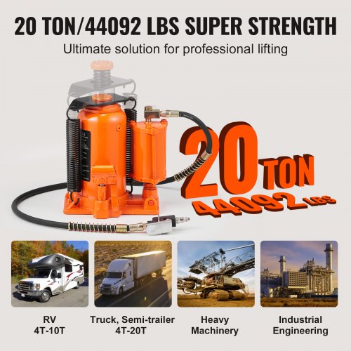 VEVOR Air Hydraulic Bottle Jack, 20 Ton (44092 lbs) Capacity, 10.2-19.5 Inch Lifting Range, Pneumatic/Manual Heavy Duty Welded Bottle Jack with Pump for Car, SUV, Pickup, Truck, RV Auto Repair, Orange