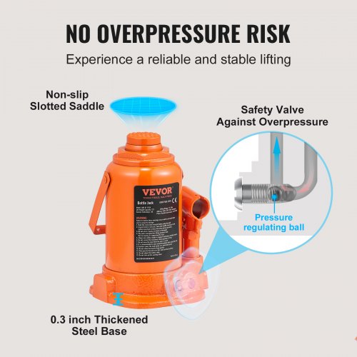 VEVOR Hydraulic Bottle Jack, 20 Ton/44092 LBS All Welded Bottle Jack, 7.5-14 inch Lifting Range, with 3-section Long Handle, for Car, Pickup Truck, Truck, RV, Auto Repair, Industrial Engineering