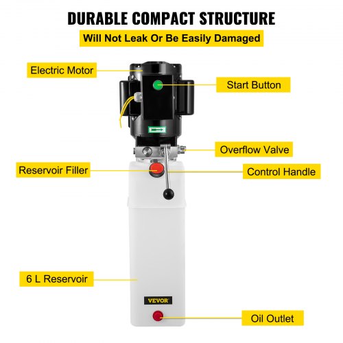 VEVOR 6 Quart Hydraulic Power Unit Single Acting Hydraulic Pump Dump Trailer 12V DC with 6L Metal Reservoir Hydraulic Power Pack for Car Lifting