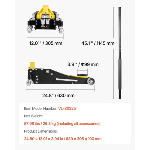 VEVOR Hydraulic Bottle Jack, 12 Ton/24000 LBS All Welded Bottle Jack, 7.5-14 inch Lifting Range, with 3-section Long Handle, for Car, Pickup Truck, Truck, RV, Auto Repair, Industrial Engineering