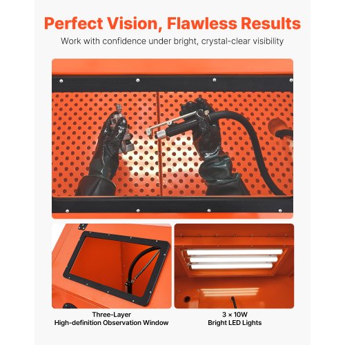 VEVOR 245 Gallon Sandblasting Cabinet with Pressurized Tank, Heavy Duty Steel Sand Blasting Cabinet on Wheels - with 32 Gallon Media Hopper & 1.6HP Dust Collector for Oversized Parts Surface Finishing