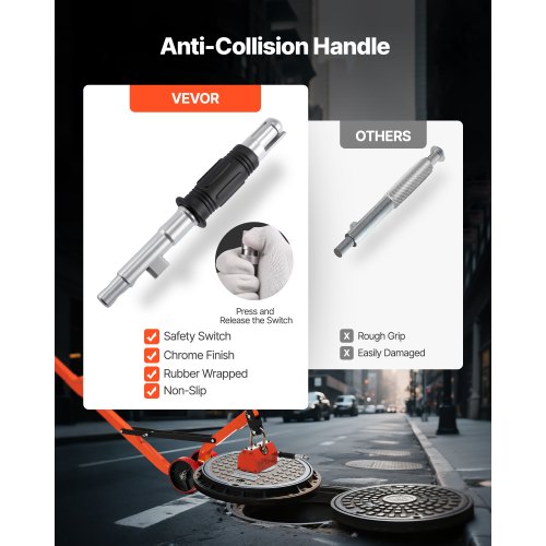 VEVOR Magnetic Lid Lifter Dolly, 1320 lbs Pulling Capacity, Steel Dolly with Heavy Duty Magnet Lift and 2 Wheels, Adjustable Handle, N42 Neodymium, Foldable and Portable, for Lifting Manhole Covers