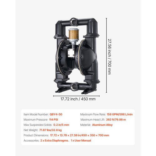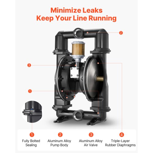 VEVOR Air Operated Double Diaphragm Pump, 44GPM, Max 115PSI Air Waste Oil Pneumatic Transfer Pump with 2 Extra Diaphragms, 1-1/2 inch Inlet & Outlet Aluminum Alloy Diaphragm Pump for Diesel Grease Oil