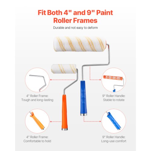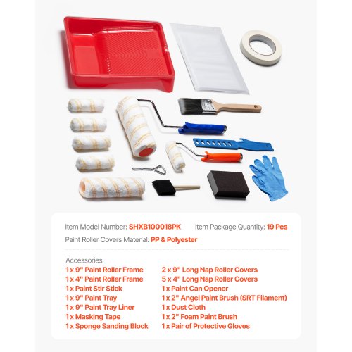 VEVOR Paint Roller Kit, 19 Piece Paint Roller Set, 4" and 9" Paint Rollers with 3/8" Naps, Paint Roller Frames, Paint Tray, Roller Covers, Paint Kit for Painting Walls, Professional or Home Owners