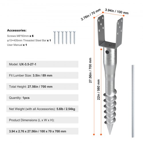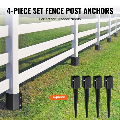 VEVOR Fence Post Anchor Ground Spike, 4 Pack 24 x 4 x 4 Inches Outer Diameter (Inner Diameter 3.5 x3.5 Inches), Metal Black Powder Coated Post Stake Ground, for Mailbox Deck Garden Railing