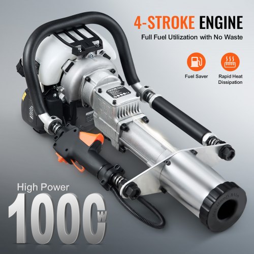 VEVOR Post Hole Digger Gas Powered, 52CC 1450W Earth Auger, Gas Auger with 8” Auger Drill Action Design Bits & 1 Extension Rod, Post Fence Hole Digger for Farmland Garden Plant, Orange+Black