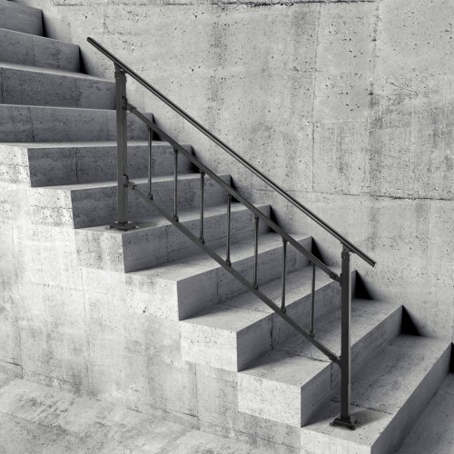 VEVOR Outdoor Stair Railing, Fits for 1-5 Steps Transitional Wrought Iron Handrail, Adjustable Exterior Stair Railing with Fence, Handrails for Concrete Steps with Installation Kit, Matte Black