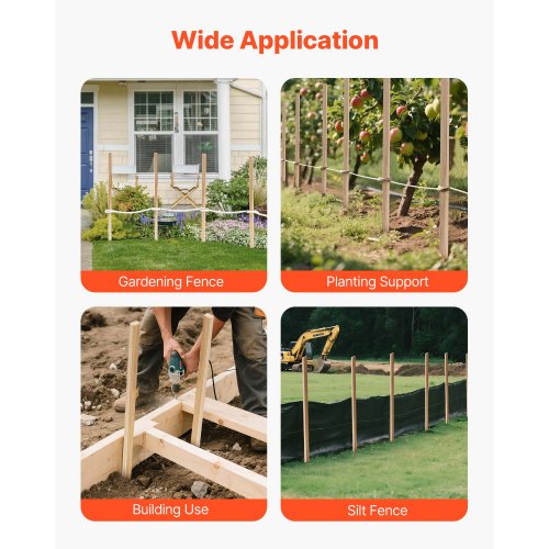 VEVOR Wooden Garden Stakes, 25 Pcs 48x0.75x0.75 in Survey Grading Stakes, Garden Ground Stake with Sharp Point, Fir Wood Plant Support Stake, Sign Posts for Silt Fence Backyard Boundaries Baselines