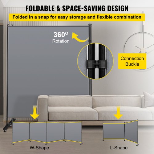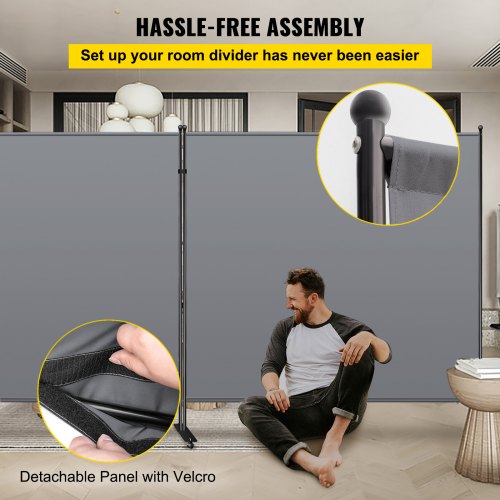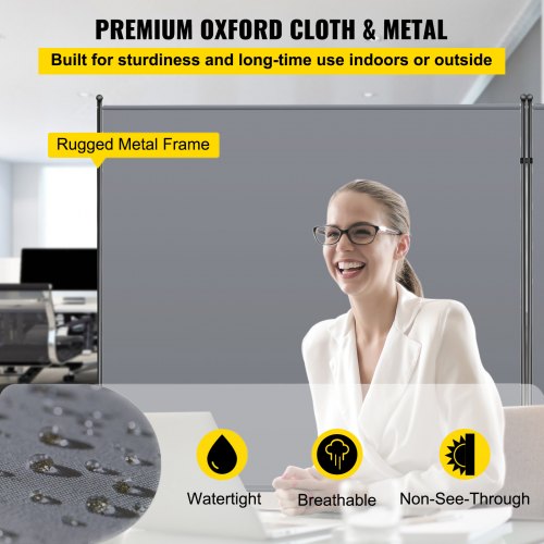 VEVOR Room Divider, Single Panel Room Divider, 6FT Privacy Screen Indoor, Partition Divider for Room Separation, Freestanding Room Divider Panel for Office, Bedroom, Grey