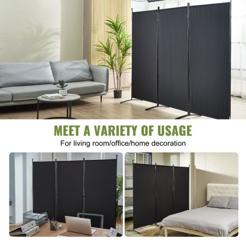 VEVOR Room Divider, 6.1 ft Room Dividers and Folding Privacy Screens (3-panel), Fabric Partition Room Dividers for Office, Bedroom, Dining Room, Study, Freestanding, Black