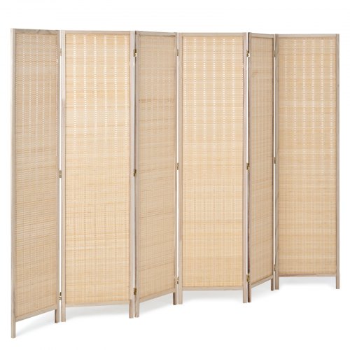 VEVOR 6 Panel Room Divider, Bamboo Hand-Woven Folding Privacy Screens with Hinges, Portable Partition Room Dividers & Freestanding Wall Divider for Room Separation, Living Room, Bedroom, Natural