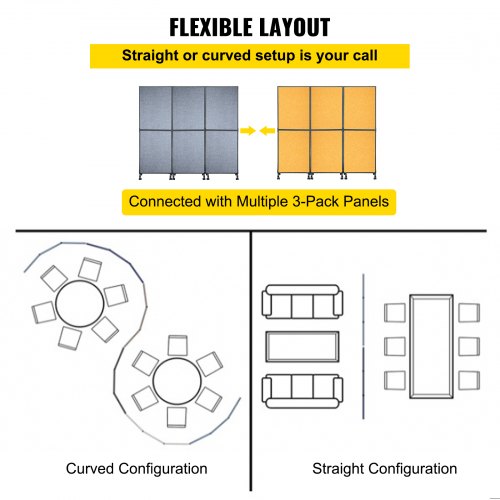 VEVOR Acoustic Room Divider 72\" x 66\" Office Partition Panel 3 Pack Office Divider Wall Light Gray Office Dividers Partition Wall Polyester & 45 Steel Cubicle Wall Reduce Noise and Visual Distractio
