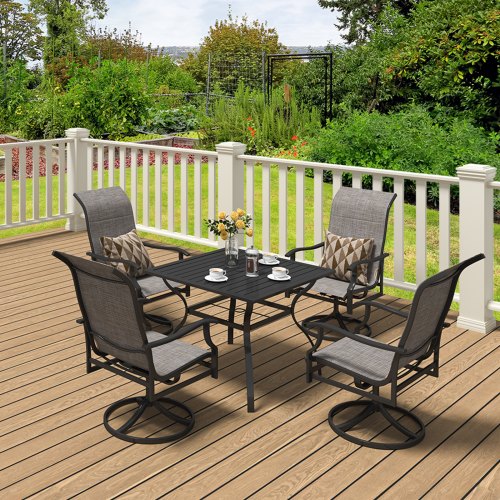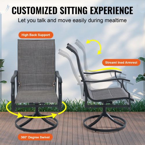 VEVOR 5 Pieces Patio Dining Set, Outdoor Furniture Table and Swivel Chairs Set, All Weather Garden Furniture Table Sets, Iron Patio Conversation Set with Umbrella Hole, For Lawn, Deck, Backyard, Black