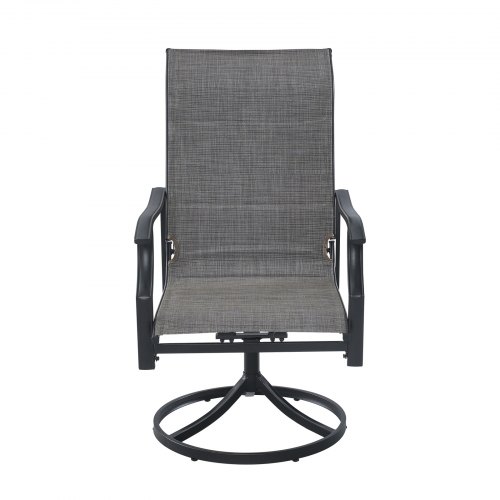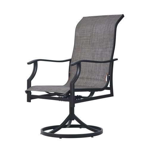 VEVOR 7 Pieces Patio Dining Set, Outdoor Furniture Table and Swivel Chairs Set, All Weather Garden Furniture Table Sets, Iron Patio Conversation Set with Umbrella Hole, For Lawn, Deck, Backyard, Black