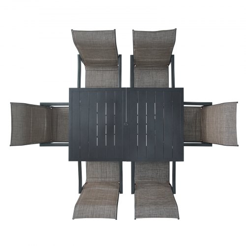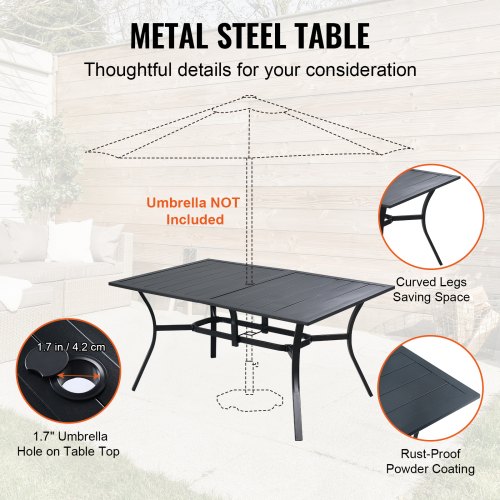 VEVOR 7 Pieces Patio Dining Set, Outdoor Rectangle Furniture Table and Chairs Set, All Weather Garden Furniture Table Sets, HIPS Patio Conversation Set, For Lawn, Deck, Backyard, Poolside, Black