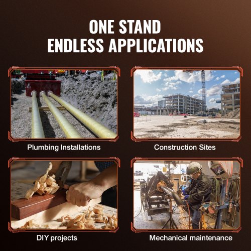 VEVOR V Head Pipe Stand 1/8\"-12\" Capacity, Adjustable Height 24\"-42\", Pipe Jack Stands 2500 lb. Load Capacity, Portable Folding Pipe Stands, Carbon Steel Body More Durable
