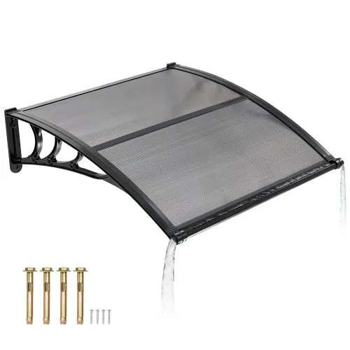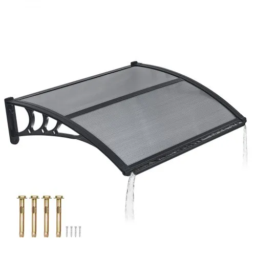 VEVOR Awnings for Door Entrance, 38 x 40 in, Exterior Front Door Window Awnings with Drainage & ABS Bracket, Rain Snow Sun Protection, Overhang Polycarbonate Door Canopy for Porch Patio, Smoky Gray
