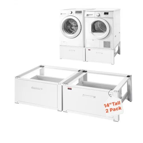 VEVOR Laundry Pedestal, 14 in Height, Washer and Dryer Pedestals with Drawer, 700 lbs Weight Load Capacity, Non-Slip Feet, Heavy-duty Steel Washing Machine Stand Universal Fit, White, 2 Pack