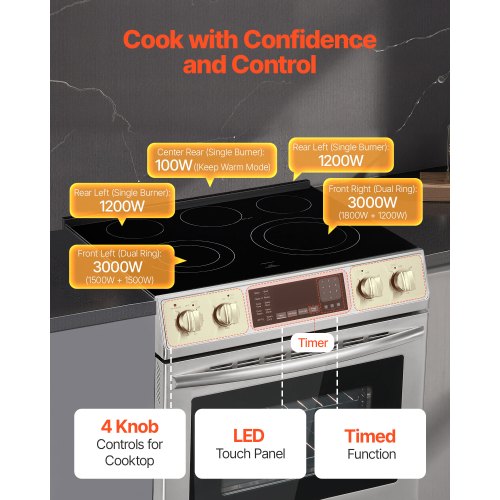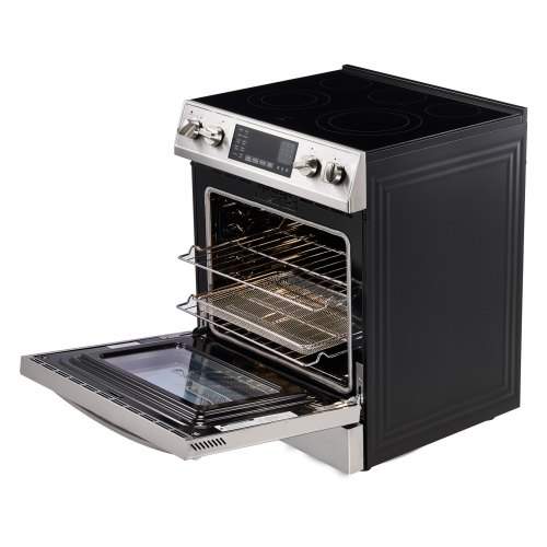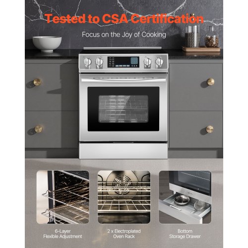 VEVOR 30 in Electric Range Oven, 4.8 Cu. Ft. Capacity Compact Freestanding Oven, Stainless Steel Kitchen Stove, with 5 Burners, Timer, Self-Cleaning, Easy Reach Racks, Storage Drawer(No Power Cord)