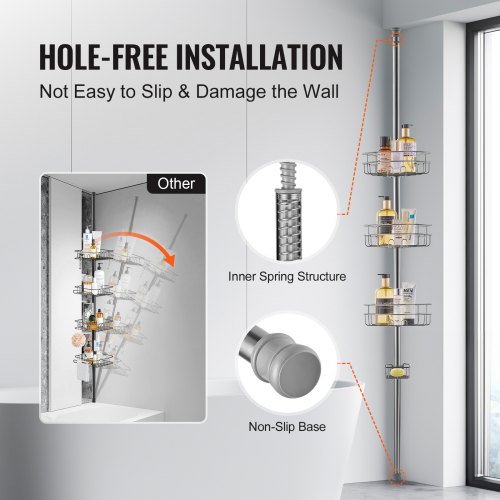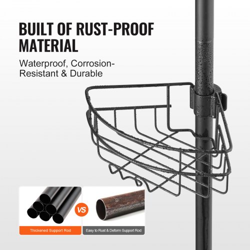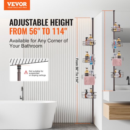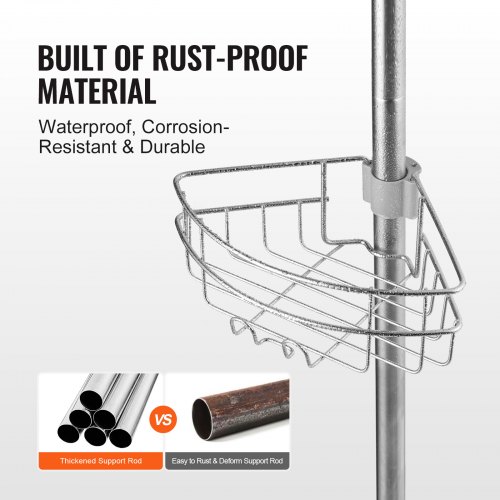 VEVOR Shower Corner Caddy Tension Pole, 42" to 114" High, Multi-Functional Shower Tension Pole with Strong Load-Bearing Tray, Rust-Proof Easy-to-Install Tension Pole, Fit for Bathroom & Washroom