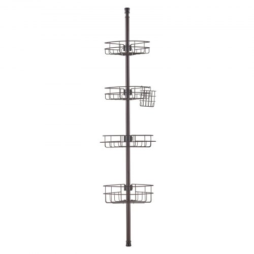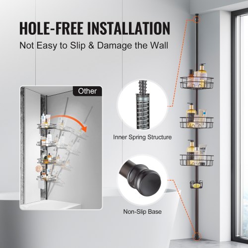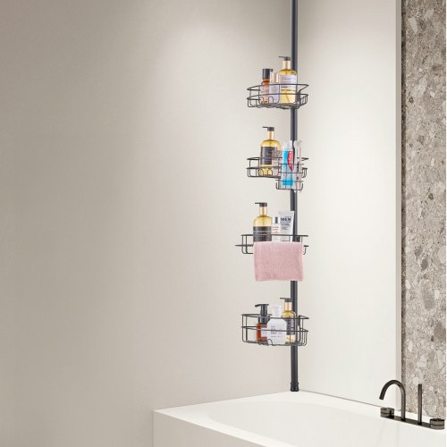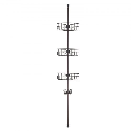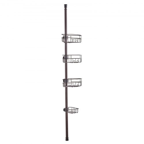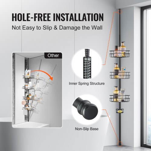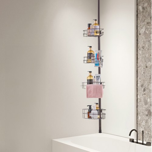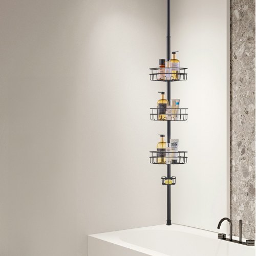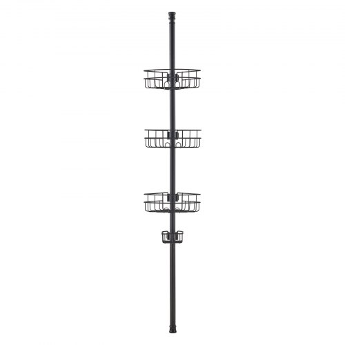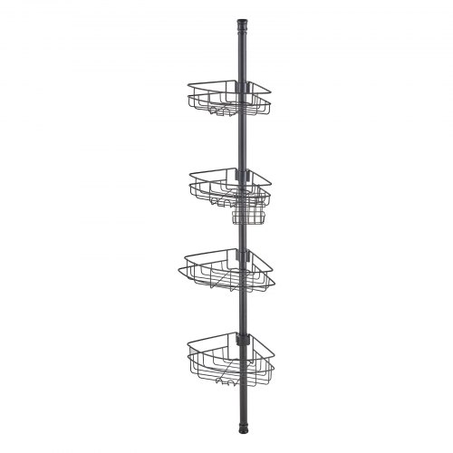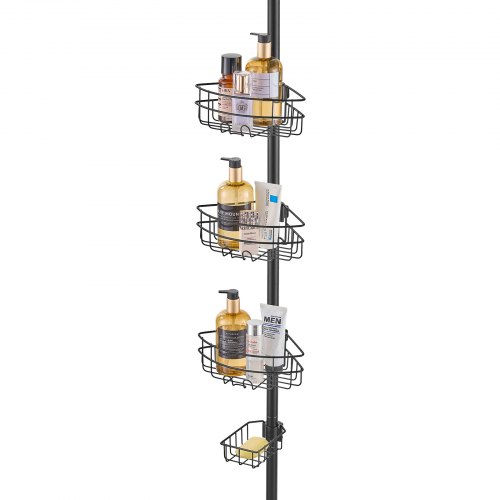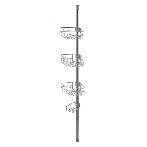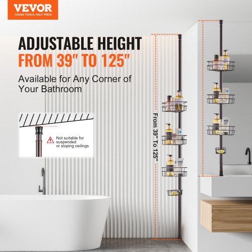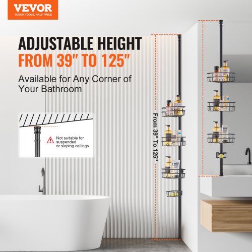 VEVOR Shower Corner Caddy Tension Pole, 39" to 125" High, Multi-Functional Shower Tension Pole with Strong Load-Bearing Tray, Rust-Proof Easy-to-Install Tension Pole, Fit for Bathroom & Washroom