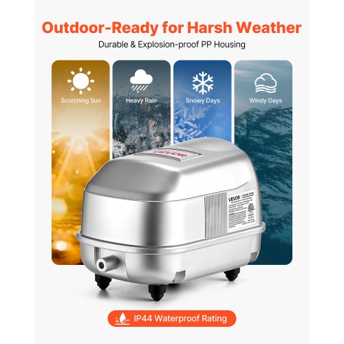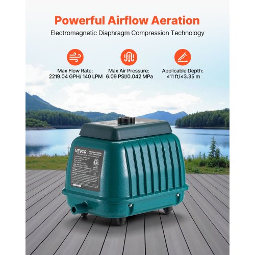 VEVOR Pond Aerator, 550W Power, 5.2CFM for Up to 3 Acre 50' Lake, Pond Aeration Kit Includes 3/4 HP Compressor & 2 100' Weighted Tubings & 2 Diffusers, Air Compressor for Deep Water Oxygen Circulation