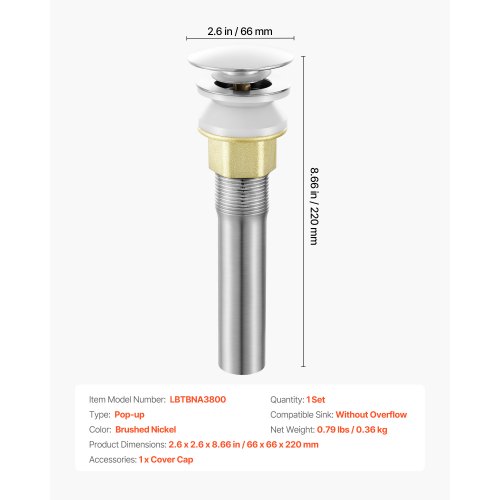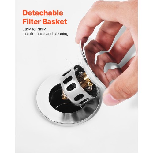 VEVOR Bathroom Sink Drain Without Overflow, Brass and 304 Stainless Steel Pop Up Drains, Anti-Clogging Vessel Drain Strainer, All Metal Hair Catcher Drains Stopper, for Sinks Without Overflow Holes