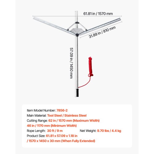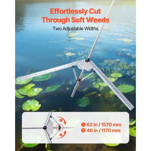 VEVOR Lake Weed Cutter, Pond Aquatic Plant Cutting Tool with 62 in Max. Cut Width, Sharp and Heavy-Duty Steel Blades, Pond Rake with 30 ft Throw Rope, for Cattail, Phragmites, Lilly Pads & Chara