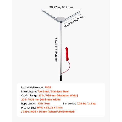 VEVOR Lake Weed Cutter, Pond Aquatic Plant Cutting Tool with 37 in Max. Cut Width, Sharp and Heavy-Duty Steel Blades, Pond Rake with 30 ft Throw Rope, for Cattail, Phragmites, Lilly Pads & Chara