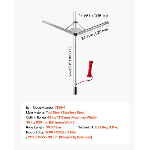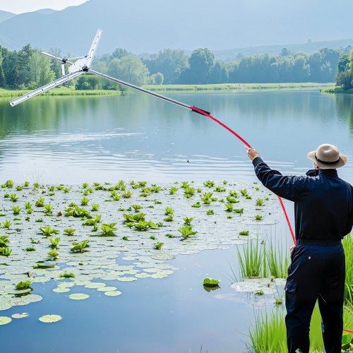 VEVOR Lake Weed Cutter, Pond Aquatic Plant Cutting Tool with 48 in Max. Cut Width, Sharp and Heavy-Duty Steel Blades, Pond Rake with 30 ft Throw Rope, for Cattail, Phragmites, Lilly Pads & Chara