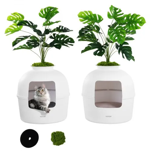 VEVOR Plant Cat Litter Box, Smart Odor Control System, Hidden Cat Litter Box with 9.48 in Large Entrance, Lighting Decoration & Sturdy ABS Material, Fit for Living Room/Corner/Outdoor Pool/Patio