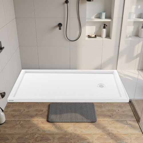 VEVOR Shower Pan, 60″ L x 36″ W Single Threshold Shower Base, Rectangle Acrylic & PVC Showering Base in White, Slip-Resistant Showering Pan Bases with Drain & Cover for Bathroom, Right Drain Location