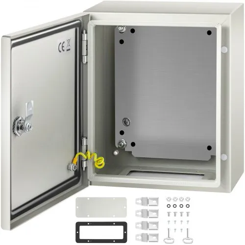 VEVOR Steel Electrical Box, 16"x 12"x 10", 304 Stainless Steel Electrical Enclosure Box, Wall-Mounted Outdoor Electrical Electronic Equipment Enclosure with Mounting Plate Hinges Lock, IP66 Waterproof