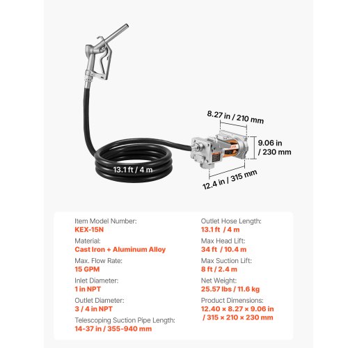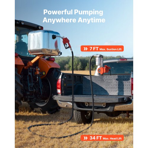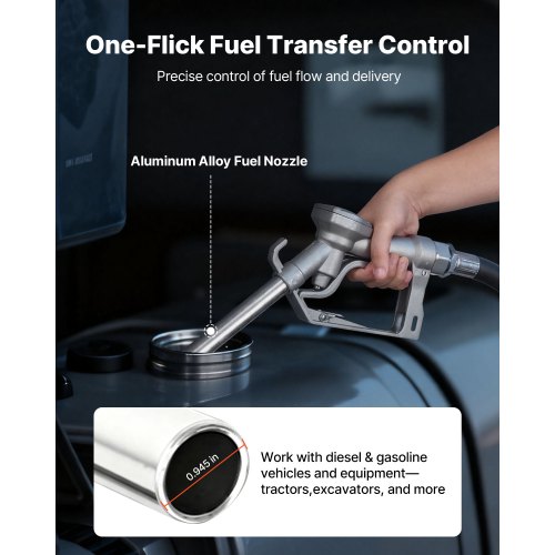 VEVOR Fuel Transfer Pump, 12V DC 20 GPM 1/4 HP, Gasoline Extractor Pump with Automatic Nozzle, Discharge Hose & Suction Pipe for Gasoline, Diesel, Kerosene, Ethanol & Methanol Blends, and Biodiesel