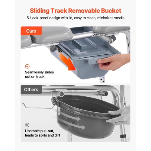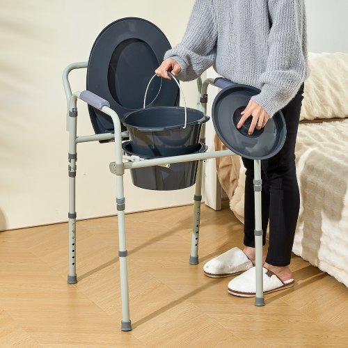 VEVOR Commode Chair, Bedside Commode with Wider Toilet Seat, 7-Level Adjustable Height, 5.8L Removable Bucket, Easy to Assemble, 350 LBS Capacity, Raised Toilet Seat for Adults Seniors