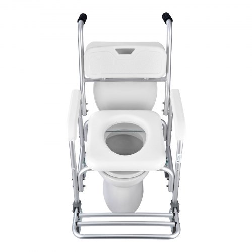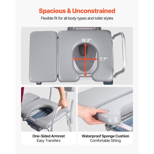 VEVOR Shower Commode Wheelchair with 4 Lockable Wheels, Footrests, Flip-up Arms, 3-Level Adjustable Height, 5L Removable Bucket, 350 LBS Capacity, Commode Chair for Adults Seniors