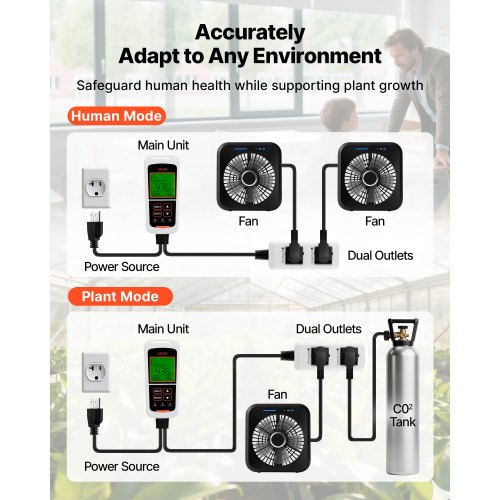 VEVOR Carbon Dioxide Monitoring Controller, Dual Outlets CO2 Monitor & Controller, Carbon Dioxide Sensor Day and Night Detection Feature, NDIR CO2 Sensor for Greenhouse, Laboratories, Classrooms, Home