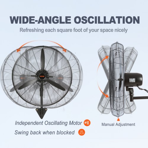 VEVOR Wall Mount Fan, 18 Inch, 3-speed High Velocity Max. 4000 CFM Oscillating Industrial Wall Fan, Commercial or Residential for Warehouse, Greenhouse, Workshop, Patio, Basement, Black, ETL Listed