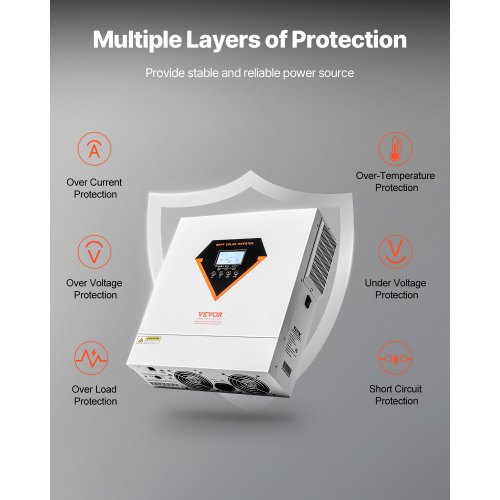 VEVOR Hybrid Solar Inverter, 3000W, All in One Pure Sine Wave Power Inverter Charger, 24V DC to 110/120V AC, with Built-in 100A MPPT Solar Controller, for Off-Grid System Lead Acid Lithium Battery