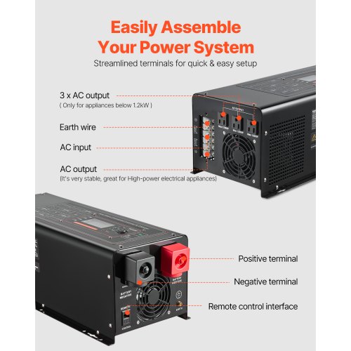 VEVOR Pure Sine Wave Inverter Charger, 2000 Watt, DC 12V to AC 120V Power Inverter with LCD Display, Remote Control, Solar Inverter for Off-Grid Solar RV Boat Home, Compatible with Various Batteries