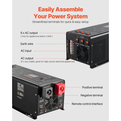 VEVOR Pure Sine Wave Inverter Charger, 6000 Watt, DC 24V to AC 120V Power Inverter with LCD Display, Remote Control, Solar Inverter for Off-Grid Solar RV Boat Home, Compatible with Various Batteries