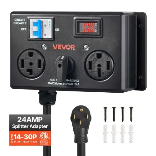 VEVOR Manual EV Charging Switch, NEMA 14-30P to 14-30R & 14-50R, Splitter Switch for Dryer & EV, 24A Max 240V Manual Power Distribution with Circuit Breaker, Hand-Operated Selector, Plug and Play, ETL