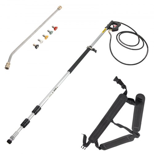 VEVOR Pressure Washer Telescoping Wand, 18 ft, 4000 psi, Telescopic Spray Wand with Power Washer Extension Wands, Gutter Cleaner, Brush Head, 5 Spray Nozzle Tips, Adapter and Adjustable Support Belt