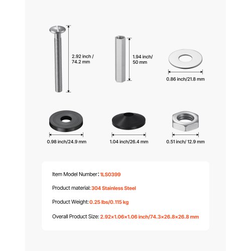 VEVOR 246 Pcs Bolts and Nuts Assortment Kit, Imperial Screws and Flat Washers, Stainless Steel 1/4-20,5/16-18,3/8-16, Spring Lock Washers for Furniture / Equipment /Vehicle Assembly with Case