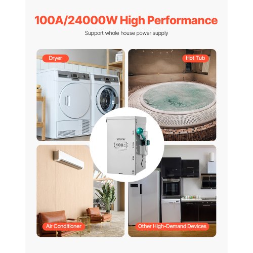 VEVOR Manual Transfer Switch, 30-Amp 6-Circuit, Prewired Generator Transfer Switch Kit with NEMA L14-30P Power Inlet Box, Double-Throw Switch, NEMA 3R, Mechanical Watt Meter, for 7500W Generators