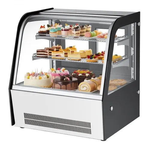 VEVOR Refrigerated Display Case, 4.2 Cu.Ft./115L Countertop Pastry Display Case, 2-Tier Commercial Display Refrigerator with LED Lighting, TURBO Cooling, Frost-Free Air-Cooling, for Bakery